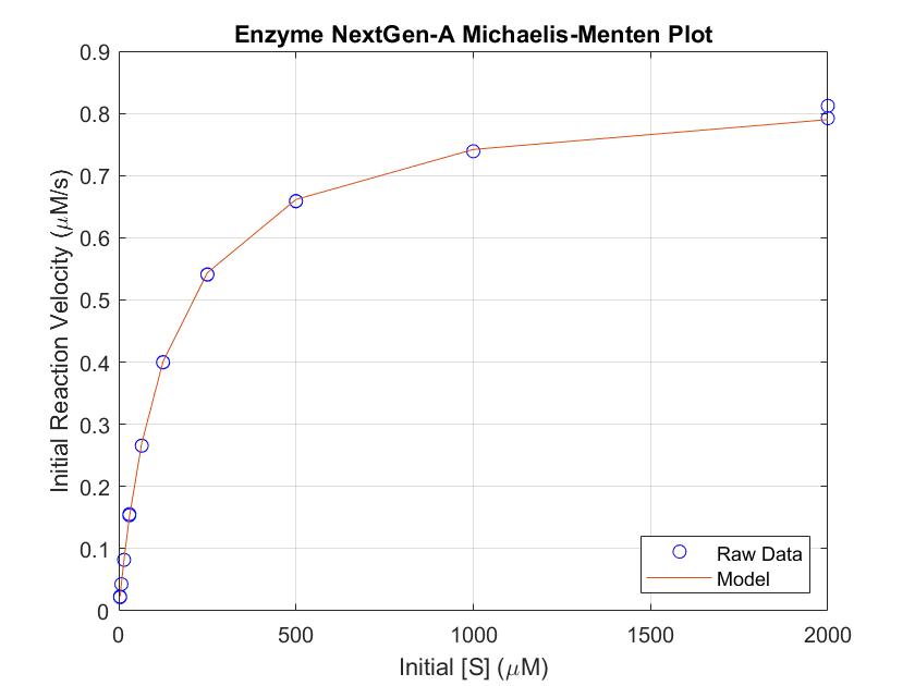 An algorithm that determines enzyme performance by modeling experiment data using