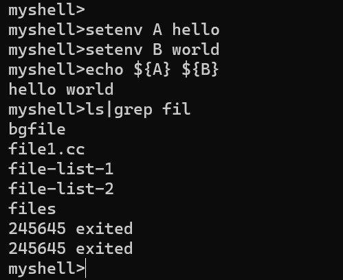 environment variable expansion, wildcarding, etc. Made with C/C++, Lex/Yacc.