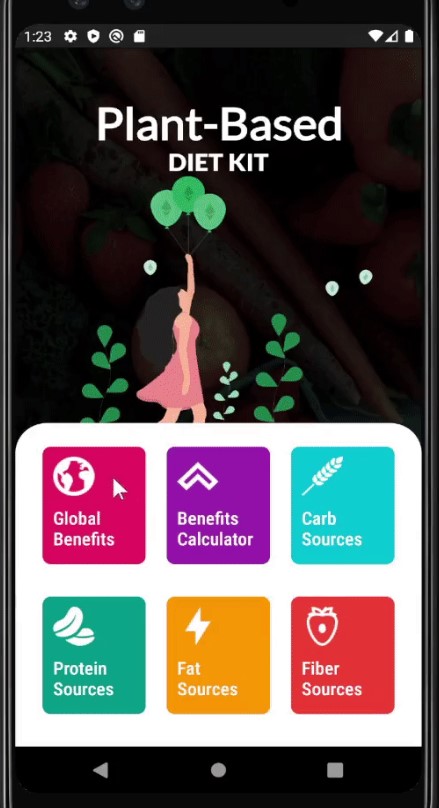 An informative health app about plant-based substitutes for daily macronutrient needs.